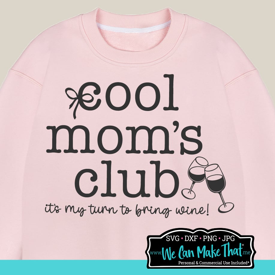 Join the Cool Momโs Club with this fun wine-themed SVG! Perfect for moms who love to laugh, sip, and craft something cute with their Cricut or cutting machine.