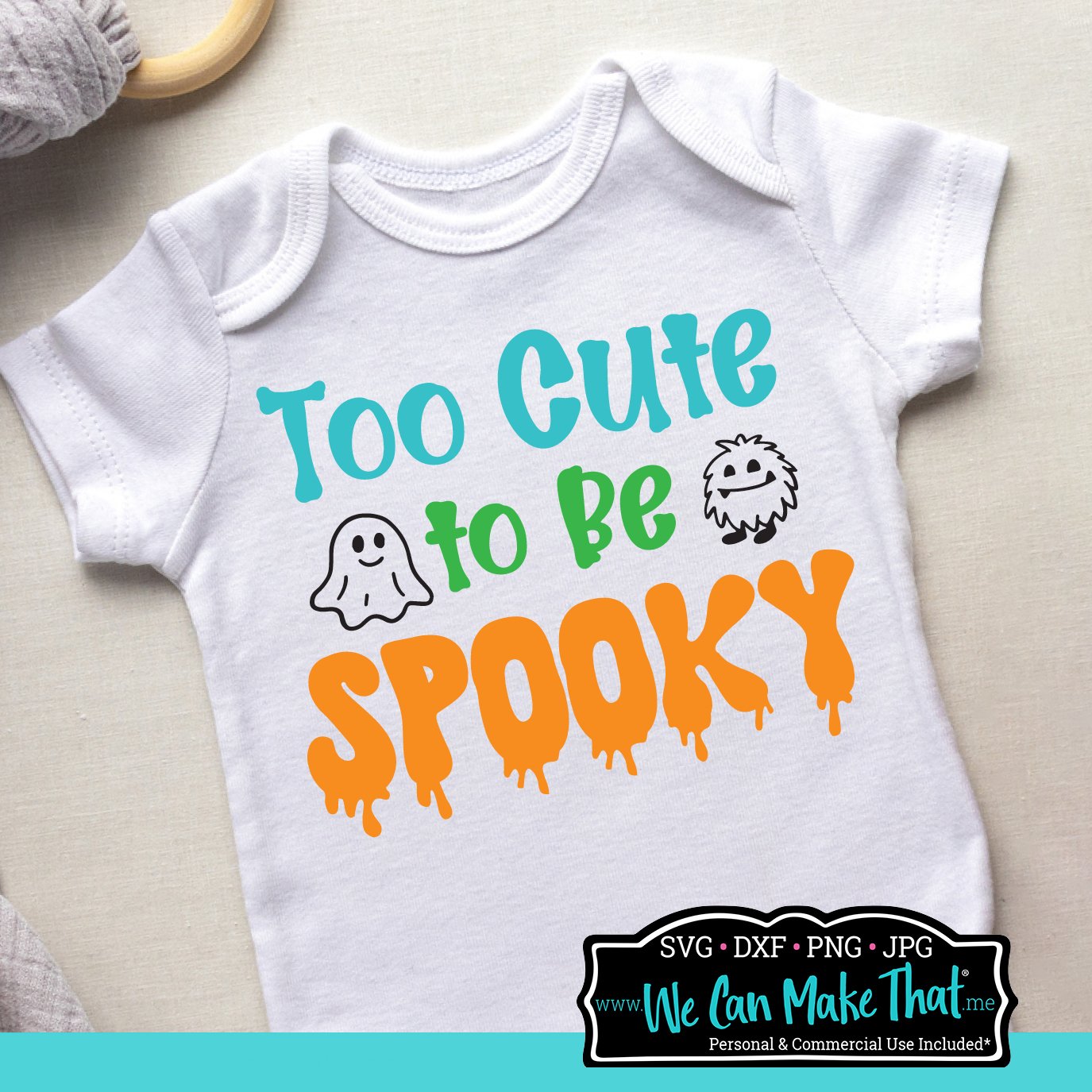 This Too Cute to Be Spooky Halloween SVG for toddlers is perfect for a babyโs first Halloween onesie or a toddlerโs graphic tee.