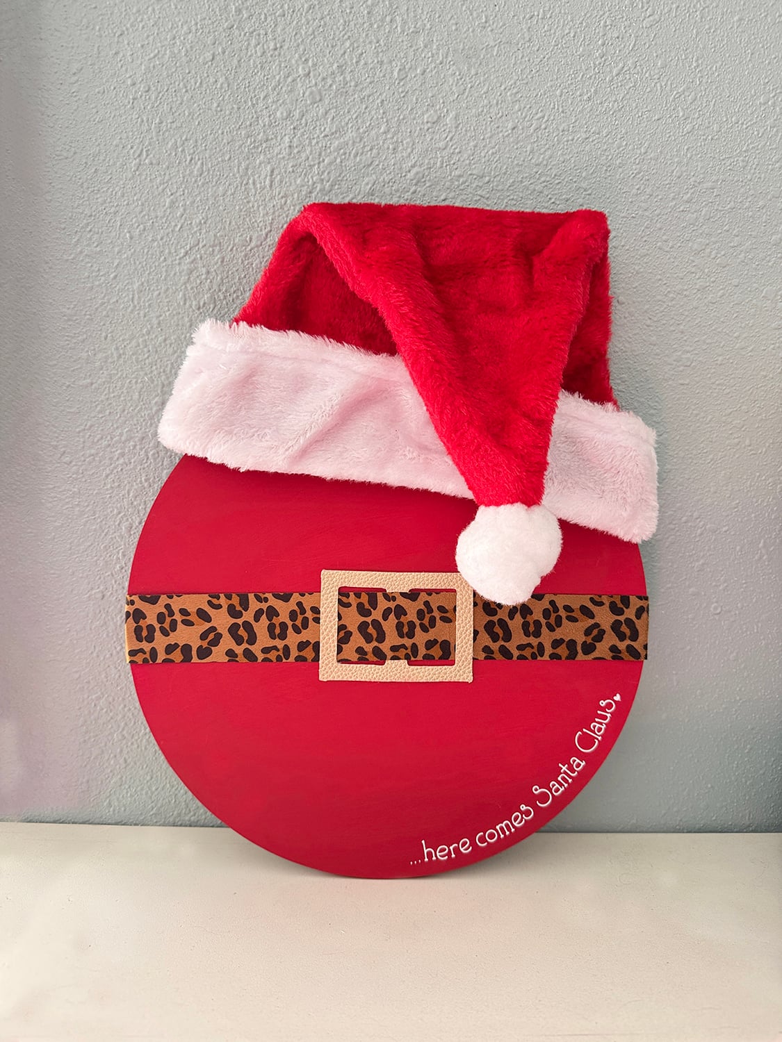 The Santa hat adds personality, but it’s optional. If you prefer a flatter look, you can skip it and adjust the wording or belt placement instead.